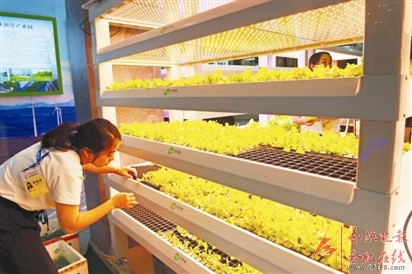 一箱箱剛剛從深圳坐飛機(jī)而來的蔬菜,一排排看上去普普通通的貨架,億平米工作人員正緊張有序地布展。“這里面擺放的不是貨物而是種植的蔬菜。架子就是微型的生態(tài)系統(tǒng),這里有蔬菜生長必須的陽光和土壤。”億平米副總裁陳超先生告訴記者,傳統(tǒng)燈管會使蔬菜受光不均勻、長勢不均衡,公司研發(fā)的LED燈可以做到“雨露均沾”;而植物需要的“土壤”也是獨(dú)特的,這種專門配置的營養(yǎng)液能夠真正實(shí)現(xiàn)無土種植、杜絕農(nóng)藥、避免重金屬污染。“通過這種方式可以實(shí)現(xiàn)蔬菜的工廠化生產(chǎn),不再需要大量的農(nóng)田,可以像蓋房子一樣搭建生產(chǎn)工廠,讓農(nóng)業(yè)種植延伸到城市。”
