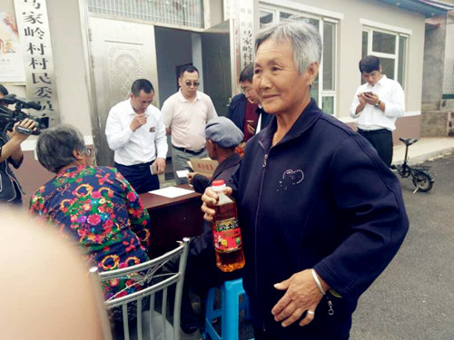 他們不僅帶來420桶食用油為馬家?guī)X村、萬寶村65歲以上老人全額發(fā)放,每人一桶,對那些身患?xì)埣残凶卟槐愕睦先擞H自從到家中,同時(shí)在發(fā)放豆油的過程中,農(nóng)工民主黨吉林省委組織部長趙海峰等一行人士或在發(fā)放現(xiàn)場,或在走家串戶過程中還與老人交談,了解他們在生產(chǎn)、生活、文化、醫(yī)療等方面的所思、所想、所盼、所求。馬家?guī)X村86歲的李景春老大爺感動(dòng)地說:“你們從好幾百里遠(yuǎn)的地方來給我們送油,貴人那!”馬家?guī)X村66歲的郭鳳珍老大娘說:“東西不在多少,這是黨的心意,國家的心意!”一份份愛心,一款款深情,傳遞著黨和國家以及社會(huì)各界對農(nóng)村老人的關(guān)懷,溫暖著老人的心。