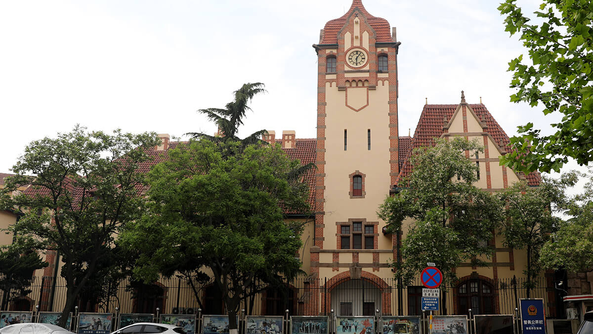 青島德國警察署舊址,最初是德國膠澳警察署,始建于1904年。一百多年來,迎來送往的一直是駐扎在這里的警察,一以貫之,功能未曾改變。該警察署為德式3層建筑,房頂坡度較大,覆以紅筒瓦,中部為一方形高聳鐘樓,既可報(bào)時(shí)又可供瞭望用?箲(zhàn)勝利后為青島市警察局,現(xiàn)為青島市公安局。