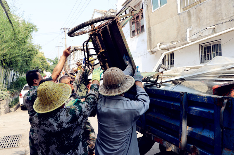 在社區(qū)李主任的帶領下,30余名在職黨員和志愿者頂著34度高溫,對下淀南路、白下路等重點街巷進行了垃圾和雜物的清理。在將近一上午的突擊整治中,雖然黨員志愿者們汗流浹背,當看到一些衛(wèi)生死角得到了徹底清理,居民露出滿意的笑容時,大家都感到今天的黨員活動日過得十分有意義。