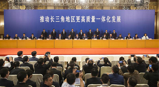 6月1日,2018年度長三角地區(qū)主要領(lǐng)導(dǎo)座談會(huì)圓滿完成各項(xiàng)議程后,舉行成果發(fā)布會(huì)。 陳正寶 張馳 攝