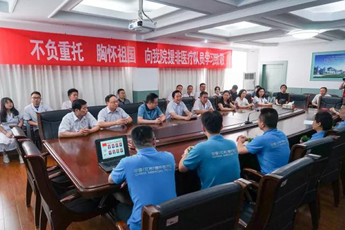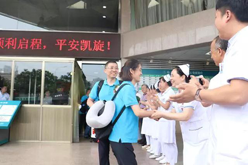 杜院長囑咐隊員們要認真工作,不辱使命,以良好的醫(yī)德醫(yī)風(fēng)和務(wù)實奮進的工作作風(fēng)全力做好援外醫(yī)療工作。希望隊員們一定要保重身體,盡快適應(yīng)當(dāng)?shù)氐沫h(huán)境并投入工作,將大愛無私的人道主義精神傳遞給受援國人民。在外遇到了困難或家屬出現(xiàn)了問題都要積極和醫(yī)院溝通,醫(yī)院會竭盡全力做好后勤保障,切實解決好醫(yī)療隊員的后顧之憂。醫(yī)院將采取“一對一”的模式,抽派專人負責(zé)解決隊員的后勤和家屬的生活需要,以保障隊員順利圓滿完成援外任務(wù)。