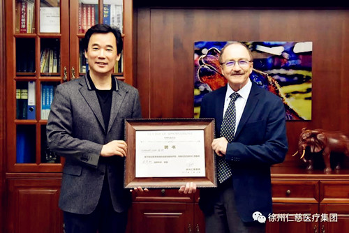 宗亞力院長向Hartmuth Kiefer教授授予“徐州仁慈醫(yī)院關(guān)節(jié)科首席專家、教授”聘書。