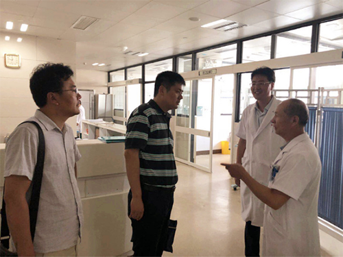 7月20日,東南大學(xué)附屬中大醫(yī)院醫(yī)務(wù)處陳輝副處長帶領(lǐng)檢查組來徐州醫(yī)科大學(xué)附屬醫(yī)院進(jìn)行業(yè)務(wù)評估工作,徐醫(yī)附院劉功儉副院長、醫(yī)務(wù)處楊煜處長、劉穎副處長、急救中心燕憲亮副主任、護(hù)理部翟鳳平護(hù)士長以及急救中心徐華、魏婧兩位護(hù)士長參加了迎評會議。陳輝副處長查看了徐醫(yī)附院衛(wèi)生應(yīng)急相關(guān)臺賬并走訪了該院急救中心、衛(wèi)生應(yīng)急物資庫房、EICU和急診病區(qū)、江蘇省衛(wèi)生應(yīng)急研究所等,交流了三大中心建設(shè)相關(guān)經(jīng)驗,對徐醫(yī)附院綜合應(yīng)急救援實力給予了高度評價,也表達(dá)了希望能夠?qū)3糖皝韺W(xué)習(xí)的心情。