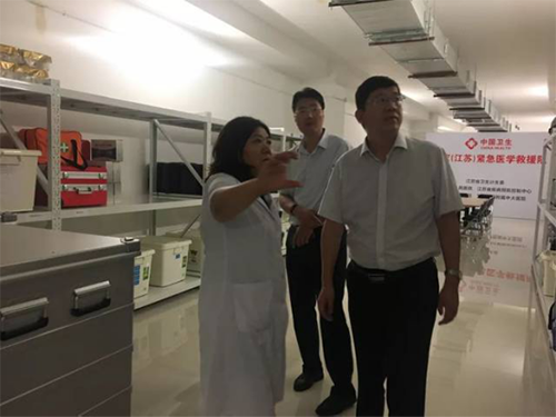 7月19日上午,受徐州醫(yī)科大學(xué)附屬醫(yī)院院領(lǐng)導(dǎo)委派,醫(yī)務(wù)處楊煜處長、劉穎副處長、王潔干事、急救中心燕憲亮副主任四人前往江蘇省人民醫(yī)院,開展為期半天的緊急醫(yī)學(xué)救援基地業(yè)務(wù)評估工作。在江蘇省人民醫(yī)院應(yīng)急辦康曉梅主任的帶領(lǐng)下,實地考察了江蘇省人民醫(yī)院物資儲備庫房、國家救援隊配置裝備、三級“120”急救指揮系統(tǒng)、遠(yuǎn)程會診中心、外出救援車輛等。江蘇省人民醫(yī)院緊急醫(yī)學(xué)救援能力從硬件到軟件均處于省內(nèi)領(lǐng)先水平,此次工作交流,對徐州醫(yī)科大學(xué)附屬醫(yī)院借鑒其衛(wèi)生應(yīng)急工作經(jīng)驗以制定下一步發(fā)展規(guī)劃起到了重要的作用。
