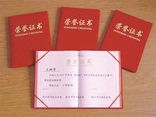 “只要付出,就總會(huì)有回報(bào),或大或小。不努力,就什么都沒有。”王琳芳老師說她始終堅(jiān)信,一分耕耘,一分收獲,功夫不負(fù)有心人,從教多年來她收獲了累累碩果。她培養(yǎng)的學(xué)生在全國程序設(shè)計(jì)大賽上取得過特等獎(jiǎng),在省程序設(shè)計(jì)大賽上取得一等獎(jiǎng),還有的考取了含金量很高的國家二級(jí)C語言證書,有20余人在全國省市級(jí)大賽中獲獎(jiǎng),她本人在徐州市首屆“聯(lián)通杯”大學(xué)生ACM-程序設(shè)計(jì)大賽中取得最佳教練獎(jiǎng)。這些年來,王老師的獲獎(jiǎng)證書堆起來有厚厚一摞。