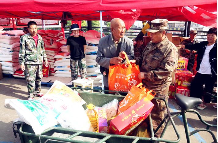 社區(qū)所在地的停車(chē)場(chǎng)內(nèi),一字排開(kāi)十幾個(gè)防雨棚,整齊地?cái)[放著各種生活必需品。物資也可謂豐富多樣,有大米、面粉、掛面、食油、月餅、粉絲、調(diào)味品、干貨、香油、咸青皮等十多個(gè)品種,涉農(nóng)老年村民還同時(shí)領(lǐng)到過(guò)節(jié)現(xiàn)金200元。