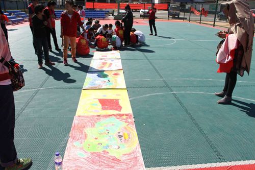 在活動(dòng)中,孩子們?cè)诓賵錾险归_畫紙,拿起畫筆,繪出自己心中的祖國和心中的美好家園。他們幾個(gè)小伙伴為一組,認(rèn)真構(gòu)思,精心描繪,祖國的大好河山在孩子們的筆下栩栩如生地展現(xiàn)出來。