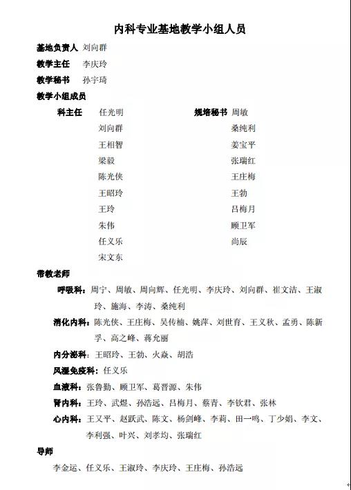 本次會議分三部分進(jìn)行。首先,科教處席紀(jì)江處長根據(jù)我院住培文件、結(jié)合國家對住培基地的檢查重申了住培工作的重要性,強(qiáng)調(diào)我院對住培工作的重視以及要求。接著,內(nèi)科基地負(fù)責(zé)人劉向群主任宣布內(nèi)科基地教學(xué)人員名單,并從內(nèi)科教學(xué)人員的職責(zé)、教學(xué)活動輪轉(zhuǎn)、出科考核內(nèi)容等主要方面對今后的內(nèi)科基地工作作出安排。最后,內(nèi)科各教學(xué)人員針對當(dāng)前內(nèi)科教學(xué)存在的問題進(jìn)行討論,共同找尋解方案。
