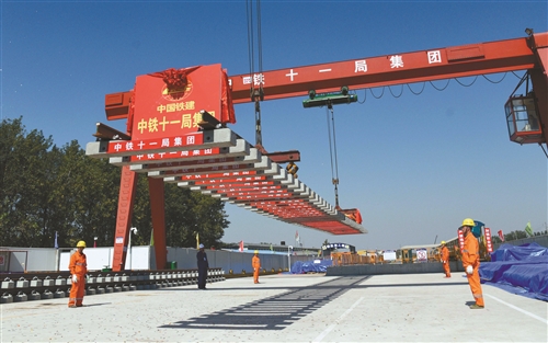 首段鐵軌緩緩升起,落入既定軌道位置。 徐州日?qǐng)?bào)全媒體記者 陳艷 攝