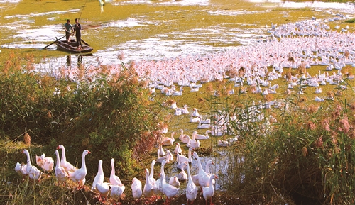 駱馬湖旅游資源十分豐富,在新沂境內(nèi)有30萬畝水面,水質(zhì)常年達(dá)到國家地表水Ⅱ級標(biāo)準(zhǔn),清澈見底。各種魚類、水生植物、鳥類繁多。湖內(nèi)分布著大小島嶼26個(gè),燦若明珠。湖面煙波浩渺,一潭碧綠,其湖光山色、人文景觀之盛,古今流傳,廣受贊譽(yù)。清朝詩人程式惠在《秋日游湖》中寫道“秋水連天碧,夕陽著地紅,鳥啼深樹里,人在畫船中”,生動地描繪出“人在湖中走,身在林中游”的優(yōu)美境界。沿湖北岸線長達(dá)56公里,綠樹成蔭,植被完好,是旅游、休閑、度假的好去處。當(dāng)你乘坐游船,穿梭在蘆葦蕩中,當(dāng)你登上水禽的觀賞平臺,看著翱翔在碧空的白鷺;當(dāng)你穿上泳裝,遨游在沙灘碧水之間;當(dāng)你垂釣歸來,來到湖邊的農(nóng)家樂,吃著湖鮮,喝著美酒,品味水鄉(xiāng)情調(diào),別有一番風(fēng)情。