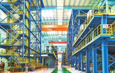 10月31日,生產(chǎn)中的安鋼冷軋連退鍍鋅生產(chǎn)線。該生產(chǎn)線自動(dòng)化程度高,設(shè)備工藝先進(jìn),主要產(chǎn)品為高端家電板、建筑板和汽車用結(jié)構(gòu)板。⑨3聶冬晗殷海民攝
