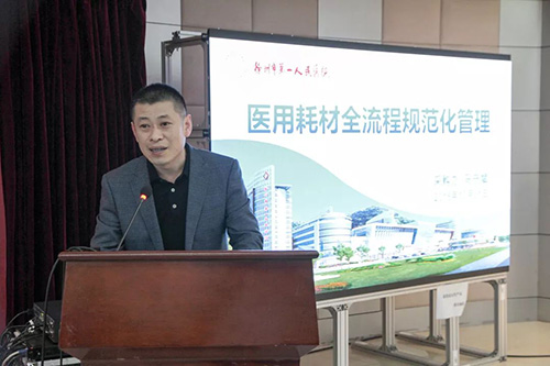 采購辦主任馬守斌做《醫(yī)用耗材全流程規(guī)范化管理》報(bào)告,結(jié)合市一院醫(yī)用耗材使用特點(diǎn)和臨床應(yīng)用實(shí)際情況,探討了其中存在的主要問題,提出醫(yī)用耗材管控思路,并對其規(guī)范性管理的要求提出一些建議。