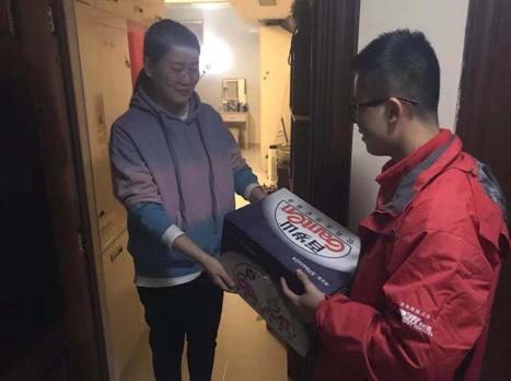 零點(diǎn)8分,青島一名消費(fèi)者收到了天貓直送快遞員送上門的天貓超市包裹——一箱礦泉水。
