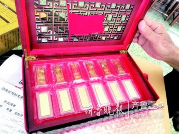 陳大爺還留了三件收藏品,包括這套紀(jì)念金條。