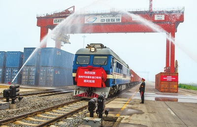 中歐班列(鄭州)首趟進口汽車專列滿載著80輛豪華進口整車抵鄭。本報資料圖片