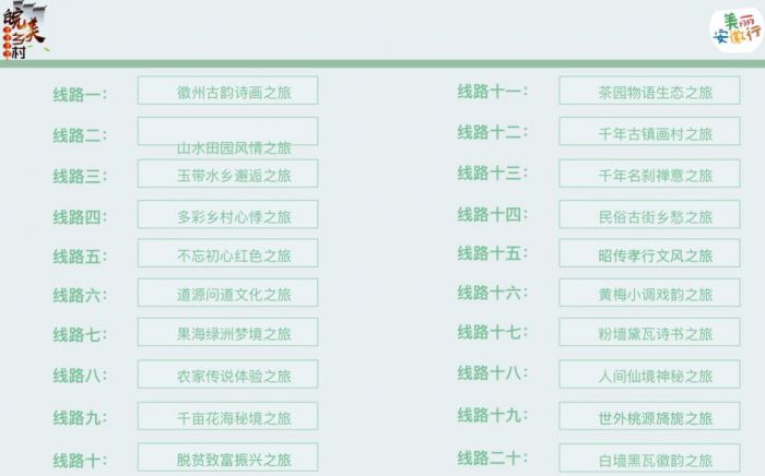 本次“百村”營銷行動歷時近半年,安徽省內(nèi)媒體人聯(lián)合旅游專家學(xué)者、旅游達(dá)人、社會知名人士,走訪了全省16個地市、100多個村莊,推出了一系列鄉(xiāng)村旅游目的地,挖掘出一批旅游扶貧的先進(jìn)模式,并將此次入選的一百個美麗的安徽鄉(xiāng)村,按照不同的業(yè)態(tài)組合成了20條皖美鄉(xiāng)村旅游線路。