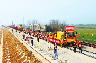在長葛北站施工現(xiàn)場,鄭萬鐵路河南段開始鋪軌。②10張臣意攝