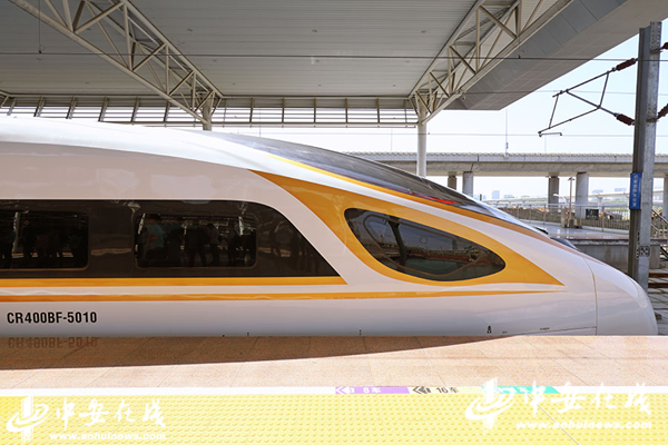 4月10日11點(diǎn)42分,隨著一聲鳴笛,一輛身涂“土豪金”的動(dòng)車駛出合肥南站。這輛CR400BF-5010號(hào)動(dòng)車是合肥南站始發(fā)的第一輛復(fù)興號(hào)動(dòng)車。復(fù)興號(hào)進(jìn)入合肥南站,意味著從此合肥到北京,只需3個(gè)多小時(shí)。