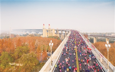 南京市副市長胡萬進在致辭中說,1968年12月29日,全線貫通的南京長江大橋是長江上第一座由中國自行設(shè)計和建造的雙層塔鐵路公路兩用大橋。大橋建成通車后,自力更生艱苦奮斗的大橋精神激勵了一代又一代的人,是南京的城市名片和世代南京人民的共同記憶。當天在這里舉行大橋通車50周年紀念跑活動,不僅要喚起廣大市民尤其是跑友們對南京長江大橋的集體記憶和情感連接,更是要感召時代精神,把自力更生艱苦奮斗的大橋精神和更快更高更強的體育精神結(jié)合起來轉(zhuǎn)化為建設(shè)世界體育名城、推動強富美高新南京建設(shè)的強大動力。