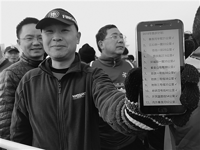 雖然是迷你馬拉松,跑友當中也不乏一些實力很強的“精英跑友”,可是有人的愿望卻是“我希望跑最后一個”。王曉強(左),在跑友群里,他有個更知名的昵稱“秒速5厘米”,他跑步的速度當然比秒速5厘米快得多,“全馬”全程42.195公里,他的最好成績是2小時49分。“全馬”能跑進3小時的“精英跑友”南京也就100多位,他便是其中之一,他還擔任過20多場官方馬拉松的領(lǐng)跑員。“現(xiàn)在我每年要跑上七八場全程馬拉松,大大小小馬拉松的獎牌,家里存了有150多塊。”王曉強告訴記者,這些獎牌和參賽服一起,見證了他從2007年開始的“跑馬”的經(jīng)歷。