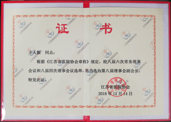 江蘇省醫(yī)院協(xié)會于2018年12月14日在泰州召開八屆六次常務理事會議和八屆四次理事會議。經會議選舉,徐醫(yī)附院黨委書記、代理院長王人顥當選為江蘇省醫(yī)院協(xié)會第八屆理事會副會長、常務理事;徐醫(yī)附院常務副院長金培生當選為江蘇省醫(yī)院協(xié)會第八屆理事會理事。
