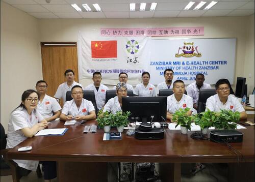 徐州市中心醫(yī)院現(xiàn)有一支11人的醫(yī)療隊在非洲的桑給巴爾執(zhí)行國家援外醫(yī)療工作任務(wù)。該醫(yī)療隊自2018年6月21日抵達(dá)桑給巴爾后,全體隊員發(fā)揚“不畏艱苦,甘于奉獻(xiàn),救死扶傷,大愛無疆”的優(yōu)良傳統(tǒng)和工作作風(fēng),各項工作取得了令人矚目的成績。醫(yī)療隊除開展醫(yī)療服務(wù)之外,不斷加強(qiáng)與政府部門、醫(yī)院管理層的合作和友誼,廣交當(dāng)?shù)嘏笥,努力做好民間外交大使,積極與領(lǐng)館及中資機(jī)構(gòu)保持友好互動。在總領(lǐng)館的帶領(lǐng)下,積極參加坦桑大陸大使館舉辦的中坦衛(wèi)生協(xié)作50周年紀(jì)念活動,展示了桑島醫(yī)療隊的整體風(fēng)采。積極開展傳幫帶,為當(dāng)?shù)卮蛟煲恢н^硬的醫(yī)療技術(shù)隊伍。積極開展到偏遠(yuǎn)鄉(xiāng)村義診活動,活動受到當(dāng)?shù)厝嗣窈兔襟w的贊揚。針對當(dāng)?shù)赜行┘膊「甙l(fā)和嚴(yán)重影響人們健康的問題,醫(yī)療隊在桑給巴爾國家電視臺進(jìn)行了疾病的預(yù)防宣教電視直播。多次受邀走進(jìn)ZBC桑給巴爾國家電視臺,接受《電視醫(yī)生》節(jié)目錄制采訪,進(jìn)行宣教講座,以提高當(dāng)?shù)鼐用駥ο嚓P(guān)疾病的認(rèn)識水平,為當(dāng)?shù)丶膊〉姆乐喂ぷ髫暙I(xiàn)一份力量。