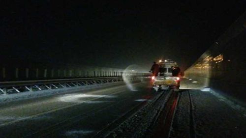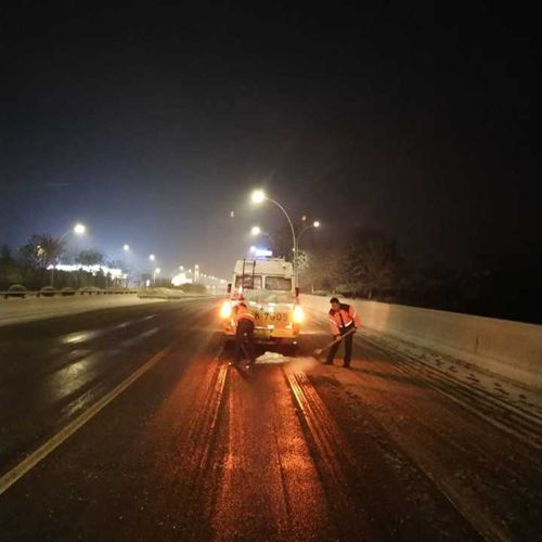 全面排查全市干線公路的橋梁、陡坡、急彎等重點位置雪天路況,及時拋撒防滑料和實施鏟雪作業(yè),充分利用除雪鏟、融雪劑撒布機(jī)、裝載機(jī)等除雪設(shè)備,對防滑路段實施機(jī)械化除雪,做好防滑除雪等安全工作,確保全市所有國省干線公路正常通行。至10日上午7時,全市公路系統(tǒng)共出動人員661人次、機(jī)械28臺次,撒布物料數(shù)461噸(其中融雪劑271噸,砂石料190噸)。