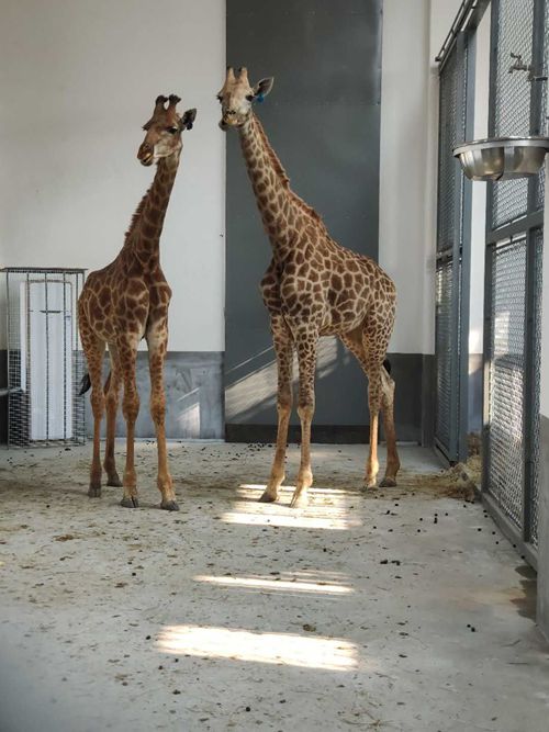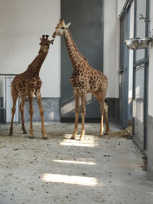 徐州彭祖園動(dòng)物園里的兩只南非長頸鹿,一雌一雄,十分可愛,屬于亞成體,年齡2-3歲。這一對(duì)長頸鹿,是201812月,跨越千山萬水,從非洲直接引進(jìn),過了隔離檢驗(yàn)期后,來到了徐州彭祖園動(dòng)物園的。