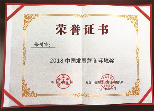 徐州市榮獲 2018中國(guó)發(fā)展?fàn)I商環(huán)境獎(jiǎng)