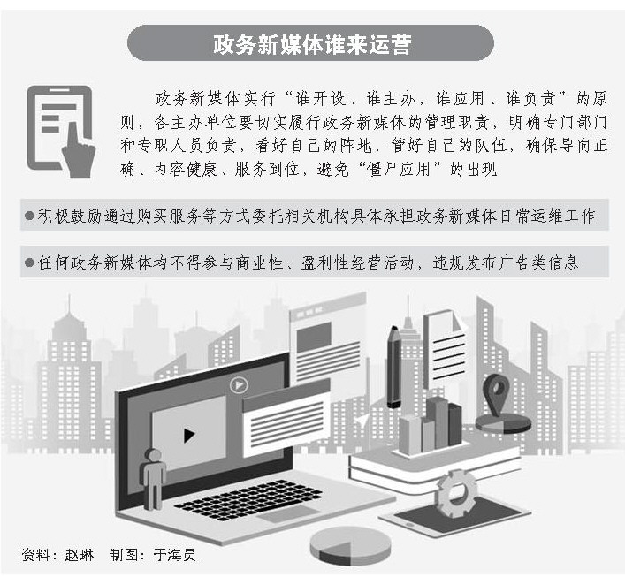 針對這種情況,通知明確:各級各部門要集中力量做優(yōu)做強主賬號,明確“官方版本”。各市、縣(市、區(qū))政府和省政府各部門應(yīng)當(dāng)開設(shè)政務(wù)新媒體,一個單位原則上在同一平臺只開設(shè)一個政務(wù)新媒體賬號,已經(jīng)開設(shè)多個政務(wù)新媒體賬號或應(yīng)用的,要結(jié)合實際情況,盡快清理整合,避免“一事一端”。積極鼓勵通過購買服務(wù)等方式委托相關(guān)機構(gòu)具體承擔(dān)政務(wù)新媒體日常運維工作。