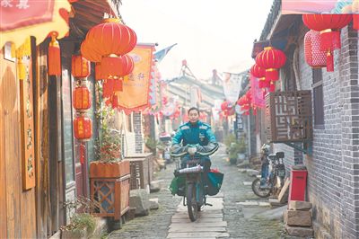 南 通 4日,郵政投遞員們?cè)谶M(jìn)行日常報(bào)刊信件投遞。 徐 慧攝