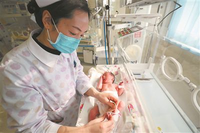 連云港 除夕夜,護(hù)士在為新生兒做護(hù)理。 司 偉攝