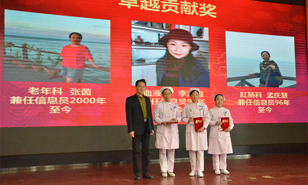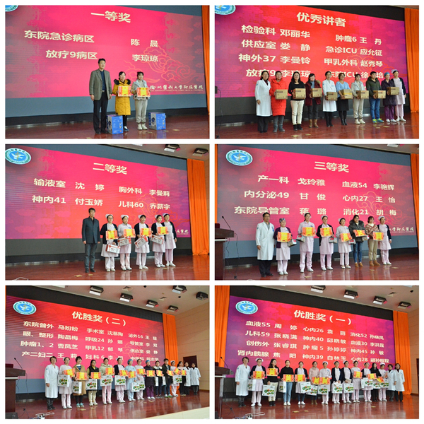 在隨后舉行的頒獎儀式上,常務(wù)副院長金培生為臨床一線做兼職感控信息員堅持15年以上的同仁頒發(fā)感控卓越貢獻獎獎杯和證書,他們是血液科李洪霞、肛腸科孟慶慧、老年科張茵三位老師。李洪霞老師代表獲獎人員發(fā)表的獲獎感言體現(xiàn)出感控工作者的責(zé)任和擔(dān)當(dāng)精神,博得了陣陣掌聲。為感謝在每季度徐醫(yī)附院感控信息員會議上做精彩發(fā)言與經(jīng)驗交流的同仁們,護理部主任劉玉平和感染管理科科長茅一萍為獲獎的檢驗科鄧麗華、腫瘤6病區(qū)王丹、消毒供應(yīng)中心婁靜、急診ICU應(yīng)允征、神外37病區(qū)李曼鈴、甲乳外科趙秀琴、放療9病區(qū)李瓊瓊、東院ICU徐培八位講者進行了頒獎;為感謝在日常醫(yī)院感染管理工作及臺賬記錄優(yōu)秀的同仁們,由副院長燕憲亮、西院書記副院長徐朝暉、附院耿德勤及王紅兩位感控大使為獲得一、二、三等和優(yōu)勝獎的信息員們進行頒獎,一等獎獲得者有東院急診病區(qū)陳晨、放療9病區(qū)李瓊瓊,二等獎獲得者有輸液室沈婷、胸外科李曼莉、神內(nèi)41病區(qū)付玉嬌、兒科60病區(qū)喬薪宇,三等獎獲得者有東院導(dǎo)管室蔣璐、產(chǎn)一科戈玲雅、心內(nèi)27病區(qū)王怡、內(nèi)分泌49病區(qū)甘俊 、消化21病區(qū)胡梅、血液54病區(qū)李艷輝。