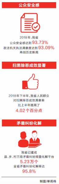 2018年,我省公眾安全感和政法機關執(zhí)法滿意度同比上升0.22和2.53個百分點,再創(chuàng)歷史新高。一曲平安和諧的新樂章正在中原大地嘹亮地奏響。