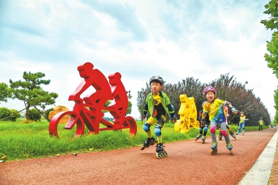 孩子們滑著輪滑穿行在美麗的宜陽縣洛河西段生態(tài)公園。本報資料圖片