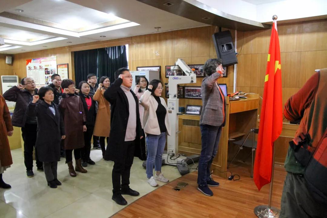 會上,雙方進行了工作方法和經(jīng)驗的交流。隨后,省計劃生育宣傳教育所黨支部一行參觀了徐州市一院被省衛(wèi)計委黨組織評為“黨員示范崗”的眼防所黨支部,他們先后來到分子生物學(xué)實驗室和黨員活動室,并在黨員活動室內(nèi)重溫了入黨誓詞。