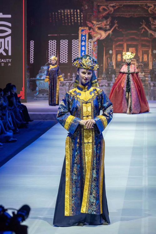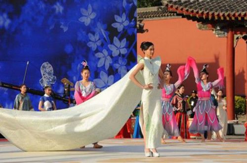 在開幕式上,展示了1200套不同風格的旗袍,并將滿繡、蘇繡、繪畫、古詩詞……中國傳統(tǒng)文化融入其中,使之成為“穿在身上的中國”一次十分完美的集體亮相。