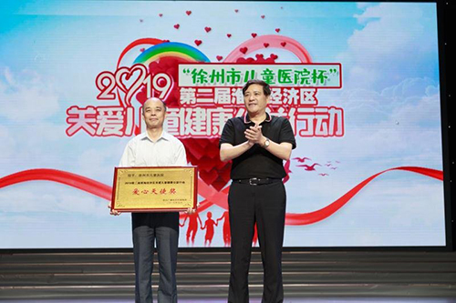 活動以歡快的兒童舞蹈拉開帷幕,孩子們天真活潑的表演感染了所有觀眾。在隨后的先天性結(jié)構(gòu)畸形救助項目啟動儀式中,孫書記、王副臺長與兩位“天使守護(hù)人”“愛心大使”共同點(diǎn)亮了大屏幕,向淮海經(jīng)濟(jì)區(qū)所有需要幫助的患兒宣告救助項目正式開始。隨后,王副臺長授予徐州市兒童醫(yī)院“第二屆淮海經(jīng)濟(jì)區(qū)關(guān)愛兒童健康公益行動愛心天使獎”。