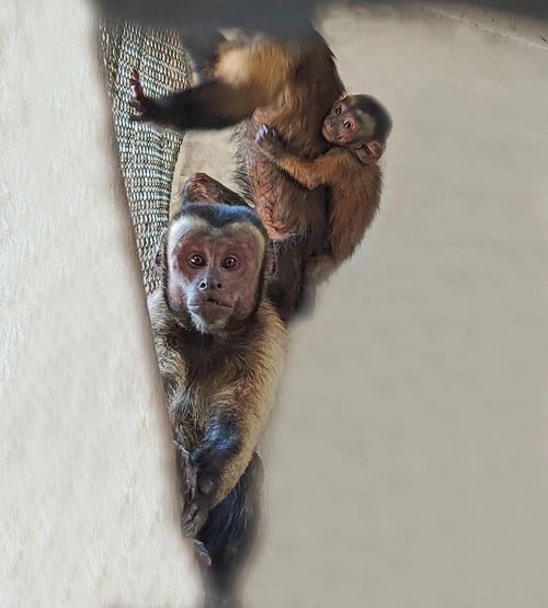 黑帽懸猴家族也添了一位新成員。萌萌的小家伙時(shí)刻趴在媽媽背上,媽媽不論到哪兒都不舍得把孩子放下,而且看見(jiàn)有生人靠近,它就立即帶著猴寶寶跑到遠(yuǎn)處躲起來(lái),想拍一張正面照還真不容易。