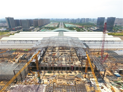 中鐵十二局徐州東站東側(cè)站房項(xiàng)目經(jīng)理呂爭(zhēng)魁介紹說(shuō),目前新建高架站房已經(jīng)和原有站房合龍,正在進(jìn)行外墻二次結(jié)構(gòu)和金屬屋面施工。側(cè)式站房正在繼續(xù)屋頂鋼桁架結(jié)構(gòu)施工。站區(qū)站臺(tái)雨棚進(jìn)行雨棚屋面工程施工。根據(jù)施工計(jì)劃,到今年7月底,工程要達(dá)到靜態(tài)驗(yàn)收標(biāo)準(zhǔn),10月底,全面竣工驗(yàn)收,12月28日可投入使用。