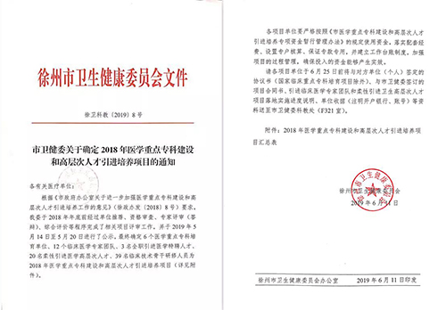 徐州市第一人民醫(yī)院5個(gè)項(xiàng)目獲批“2018年醫(yī)學(xué)重點(diǎn)專(zhuān)科建設(shè)和高層次人才引進(jìn)培養(yǎng)項(xiàng)目”