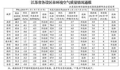 江蘇省打好污染防治攻堅(jiān)戰(zhàn)指揮部辦公室發(fā)布各設(shè)區(qū)市環(huán)境空氣質(zhì)量情況通報(bào)(詳見下表)。通報(bào)顯示,1月1日—7月15日,對(duì)照2019年各設(shè)區(qū)市環(huán)境空氣質(zhì)量改善約束性目標(biāo),13個(gè)設(shè)區(qū)市中,無(wú)錫、常州、淮安、鎮(zhèn)江、泰州和宿遷6市PM2.5濃度降幅達(dá)標(biāo),其他7市PM2.5濃度降幅未達(dá)標(biāo);淮安、泰州2市優(yōu)良天數(shù)比率升幅達(dá)標(biāo),其他11市優(yōu)良天數(shù)比率升幅未達(dá)標(biāo)。