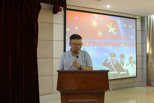 全軍醫(yī)院感染學(xué)專業(yè)委員會(huì)主任委員、國(guó)家衛(wèi)生標(biāo)準(zhǔn)委員會(huì)消毒標(biāo)準(zhǔn)委員會(huì)委員、空軍總醫(yī)院感染控制科主任曹晉桂作題為“彰顯醫(yī)院感染管理的原動(dòng)力,推動(dòng)醫(yī)療護(hù)理質(zhì)量的深層次發(fā)展”的院感知識(shí)培訓(xùn)。