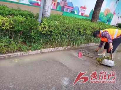 ▲強降風雨過后,環(huán)衛(wèi)工人開展路面全面保潔,第一時間恢復干凈、整潔的城市環(huán)境。