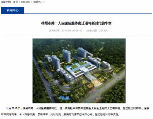 徐州市第一人民醫(yī)院官方網(wǎng)站于9月初刊發(fā)了搬遷前的相關(guān)新聞。
