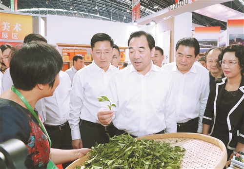 周鐵根、王安順等領(lǐng)導(dǎo)嘉賓參觀文博會(huì)展區(qū)。