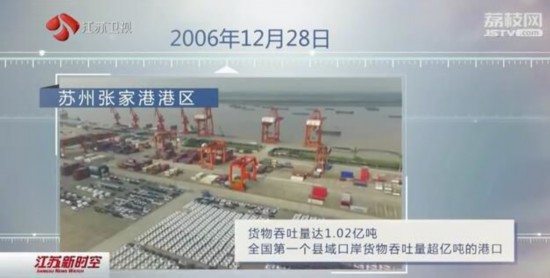 2006年12月28日,蘇州張家港港區(qū)貨物吞吐量達(dá)1.02億噸,成為全國(guó)第一個(gè)縣域口岸貨物吞吐量超億噸的港口。