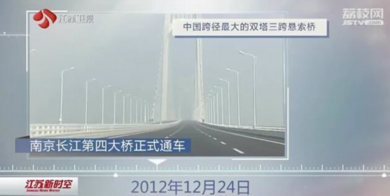 2012年12月24日,中國(guó)跨徑最大的雙塔三跨懸索橋-南京長(zhǎng)江第四大橋正式通車。