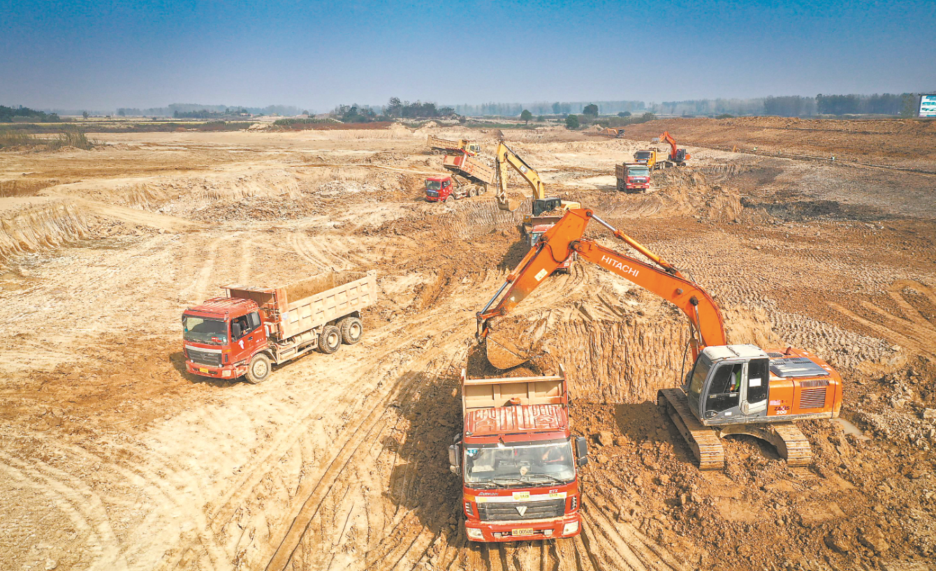 10月17日,中國(guó)水利水電第四工程局有限公司承建的引江濟(jì)淮江淮溝通段工地上,機(jī)聲轟鳴,施工場(chǎng)面熱火朝天。本報(bào)記者李博特約攝影倪軍攝